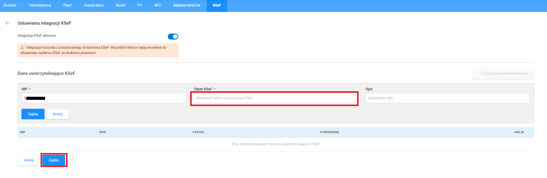 - Błąd zapisu: Sprawdź, czy NIP nie zawiera spacji ani myślników (tylko cyfry) oraz czy token został skopiowany w całości.